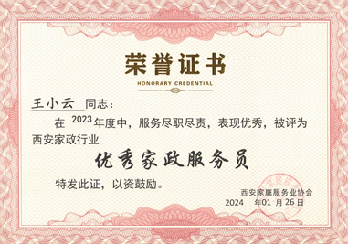 西安燕子月嫂榮譽(yù)和資質(zhì)